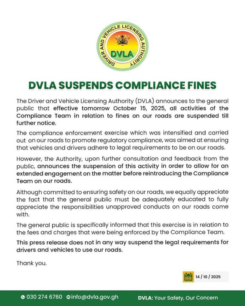 Meanwhile, DVLA emphasized that the suspension only to the enforcement of fees and charges carried out by the Compliance Team.