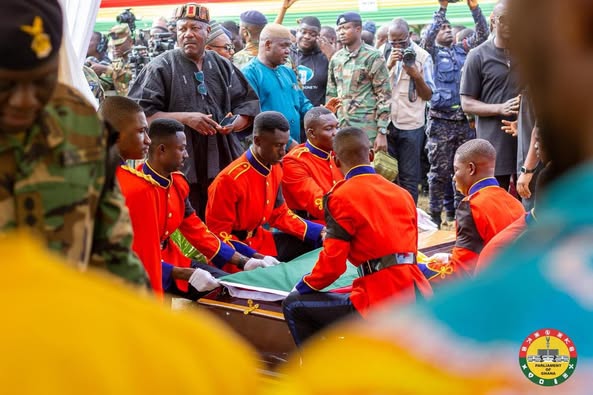Led by Chief Imam Sheikh Osman Nuhu Sharubutu, prayers were held for Alhaji Muniru and Murtala Mohammed, attended by President Mahama, Speaker Bagbin, and other officials, before their burial at the Accra military cemetery.