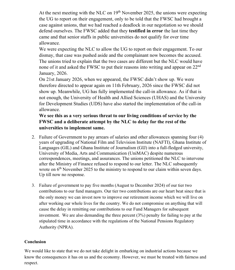 While the NLC has adjourned hearings to February 11, the unions say other institutions, including UHAS and UDS, have already begun implementing the disputed pay cuts.