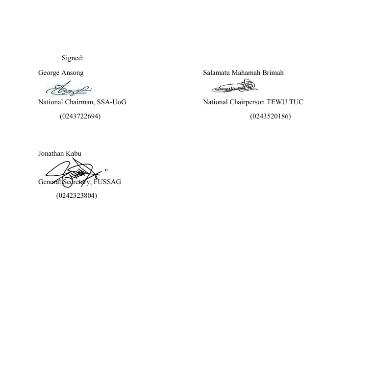 The Senior Staff Association of Universities of Ghana (SSA-UoG), alongside FUSSAG and TEWU-TUC, have jointly declared an indefinite nationwide strike, effective immediately.
