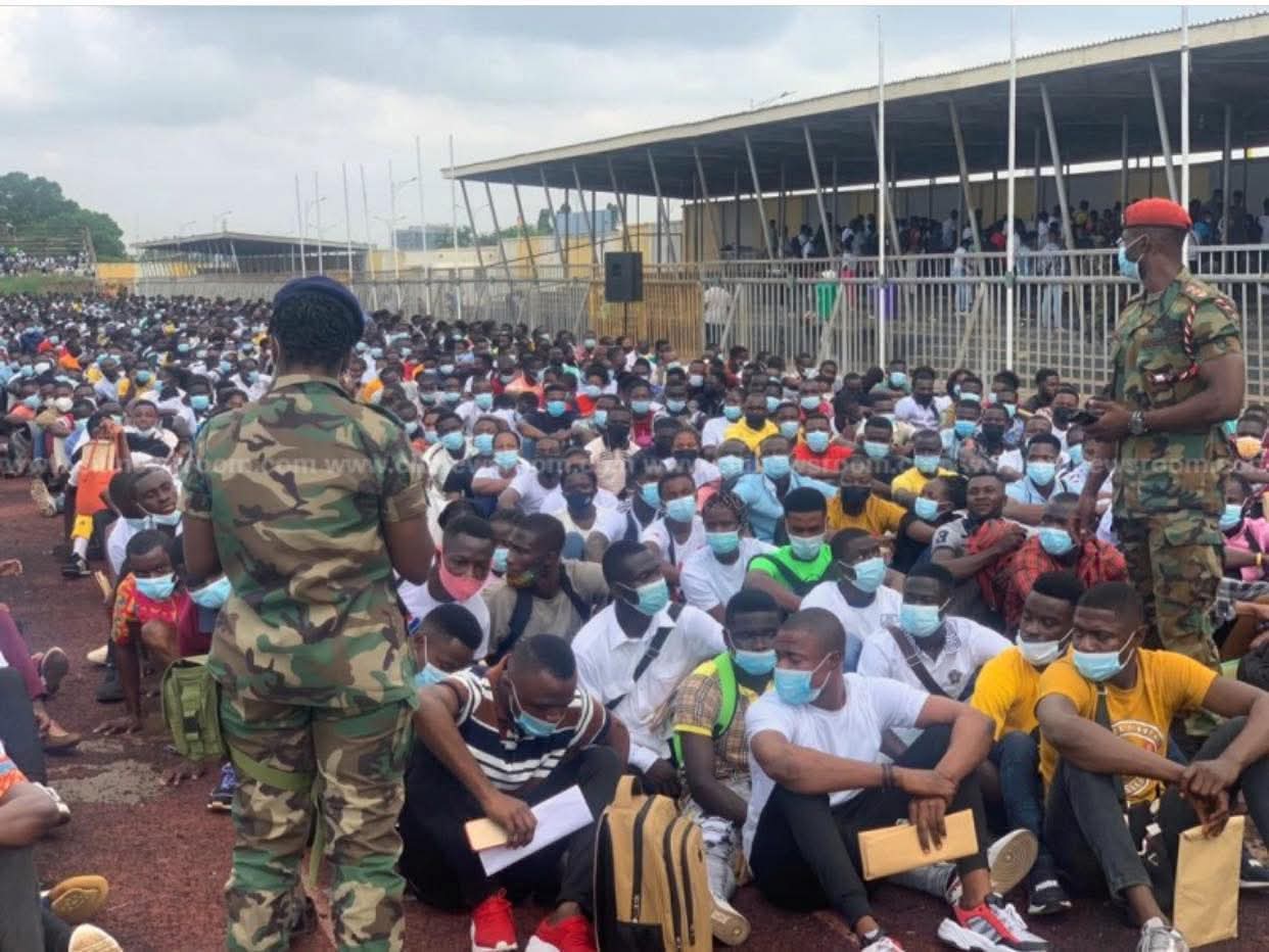 The El-Wak Stadium in Accra, which is the venue for the exercise, was thronged by scores of potential recruits earlier today, hoping to complete the recruitment processes.